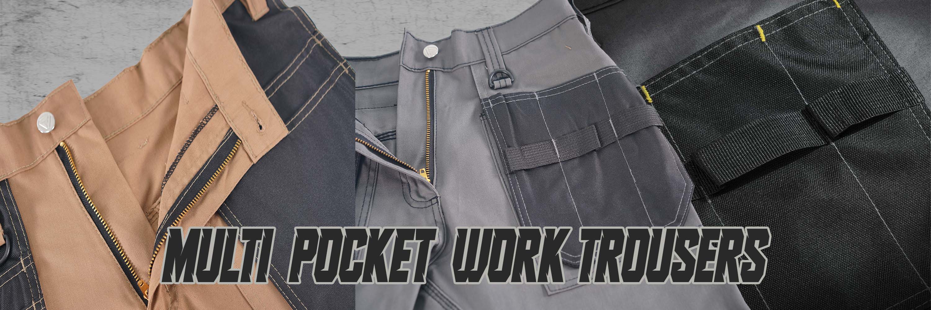 The multi-pocket Work Trousers with knee pad pockets and Holster pockets are ideal workwear cargo pocket pants for workers. They have multiple pockets that offer more storage space. The construction of the pant is made from a soft, stretchable fabric that offers freedom of movement and comfort.